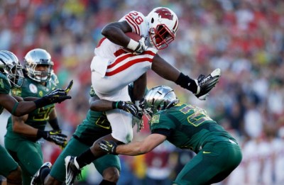 Wisconsin has a strong tradition of producing some of the best tailbacks in college football year in and year out, and last season proved to be no different. The latest product in a long line of running back greats is Montee Ball. The 5’11” 212-pound workhorse led all rushers in 2011 with 1923 yards. During conference play, Ball averaged 155 yards per game and even cracked 2 bills twice last season (11/5 Purdue-223, 11/19 Illinois-224).
