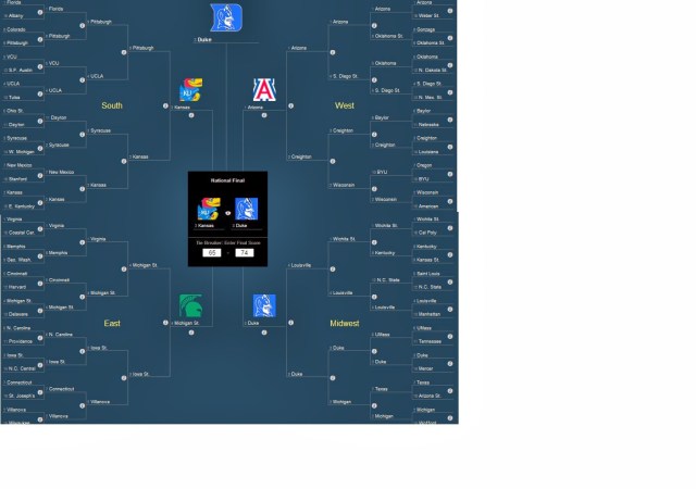 My 2014 NCAA March Madness Bracket On March 20, 2014August 16, 2018 By cherrypickinsportsIn Andrew Wiggins, Arizona Wildcats, coach Krzyzewski, Duke Blue Devils, Final Four, Jabari Parker, Kansas Jayhawks, Michigan State Spartans, NC State Wolfpack, Sean Miller, TJ Warren, Tom Izzo Share this: Click to share on X (Opens in new window) X Click to share on Facebook (Opens in new window) Facebook Like Loading... Related