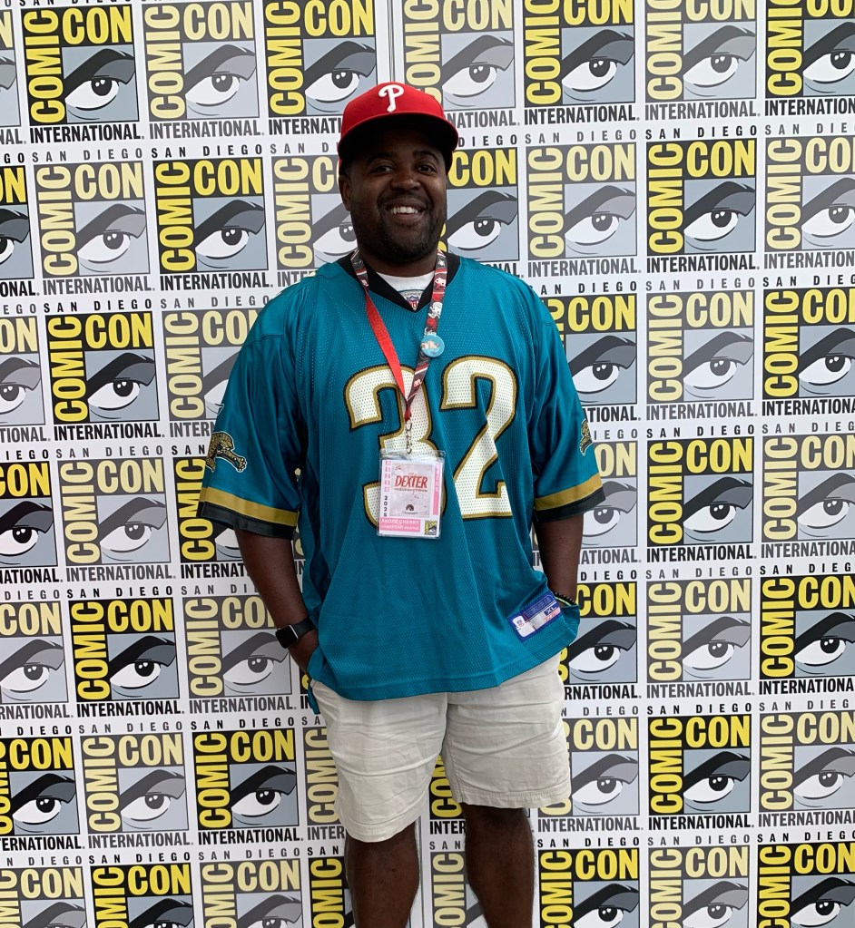 [8:12am] The Bayfront Hilton offers this neat breakfast buffet for con goers so I decide to pay for a breakfast burrito, a banana, and a water. I just need some fuel to get me jumpstarted. I find an empty room on the second floor and take a seat with other con goers. An unhoused shirtless man who had some white residue over his mouth comes by asking for a dollar and says that he is my biggest fan. I’m confused at first, but then I realize that he’s talking about my throwback Jacksonville Jaguars Maurice Jones-Drew jersey that I’m wearing for the day. I give the man a fist bump and then watch as hotel security promptly escorts him off their premises.
