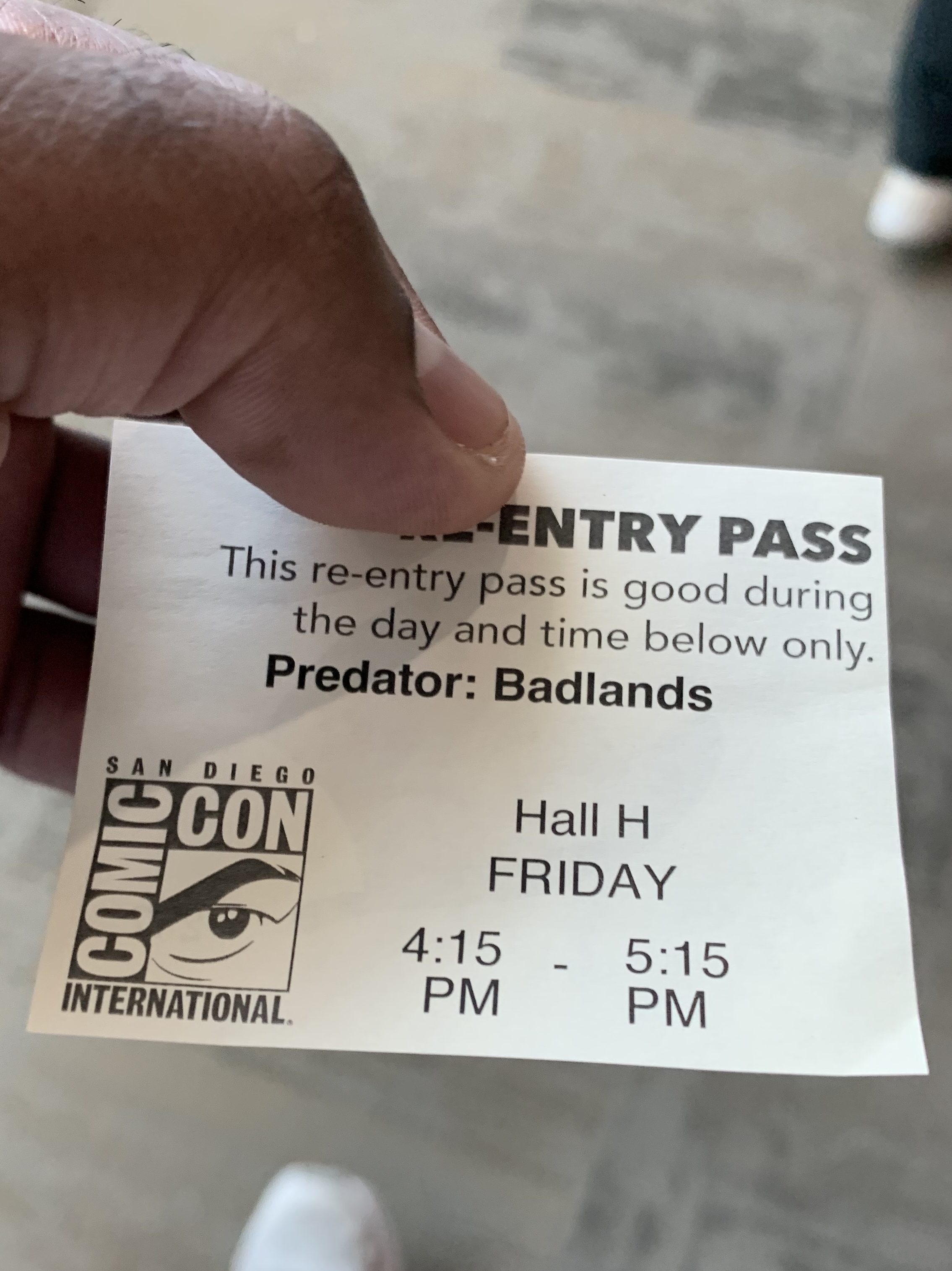 [4:57pm] However, as luck would have it, I find myself inside Hall H… And I don’t want to reveal on here how I got in, but with a little bit of creativity and a whole lot of charm, it’s possible to enter rooms that otherwise appear closed off. Once I’m inside I settle into a back row and enjoy watching the end of an exclusive 15 minute clip of the new Predator Badlands movie. I sit next to another con goer named Ray who is sitting by himself. This chance interaction will come in handy tomorrow…