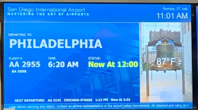 [4:47am] I purchased the first flight out of SAN so that I can make it back to Philly in the afternoon (2:51pm EST) and have a little bit of time unwinding before I have to go back to work on Monday. My flight is scheduled to leave SAN at 6:20am however as I’m waiting at the gate I notice my flight is now delayed to 8:00am. Well, I’m already at the gate, I’ll just wait a few more hours until it’s time to board…